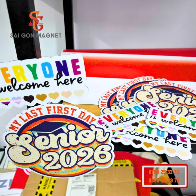 Decal nam châm dẻo (Magnetic Decal) là loại decal in được cán lên lớp nam châm dẻo, giúp sản phẩm có thể bám chắc lên bề mặt kim loại như tủ lạnh, cửa sắt, bảng từ, xe hơi, kệ thép… mà không cần sử dụng keo.