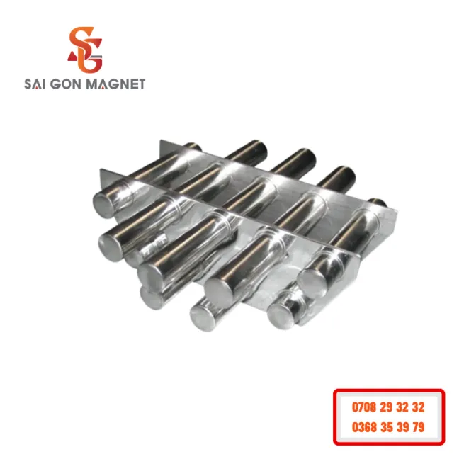 Lưới nam châm lọc sắt được thiết kế gồm nhiều thanh nam châm inox sắp xếp song song thành dạng lưới, chuyên dùng để tách mạt sắt, đinh ghim và tạp chất kim loại trong nguyên liệu dạng hạt hoặc bột. Với lực từ mạnh, kết cấu inox 304/316 bền bỉ và thiết kế dễ lắp đặt, sản phẩm mang lại hiệu quả lọc sắt cao, bảo vệ máy móc và nâng cao chất lượng nguyên liệu đầu vào.