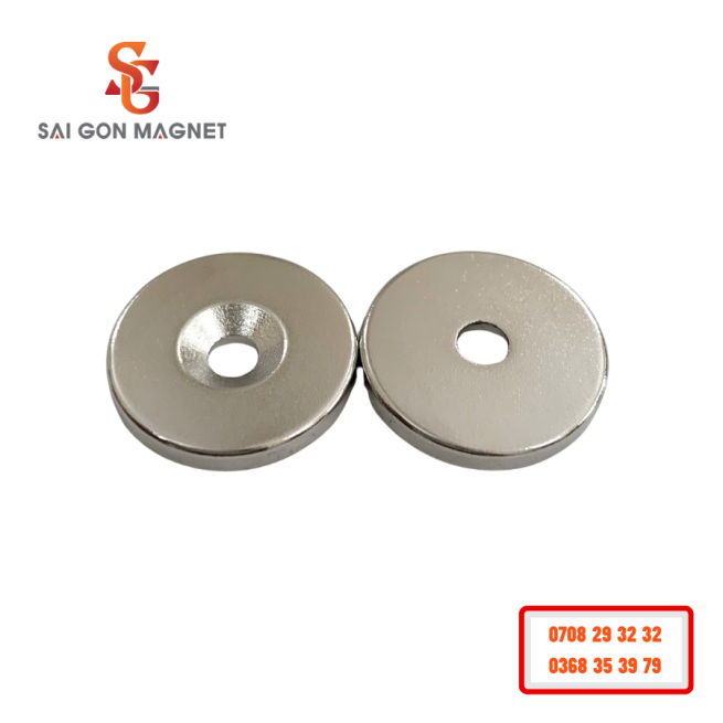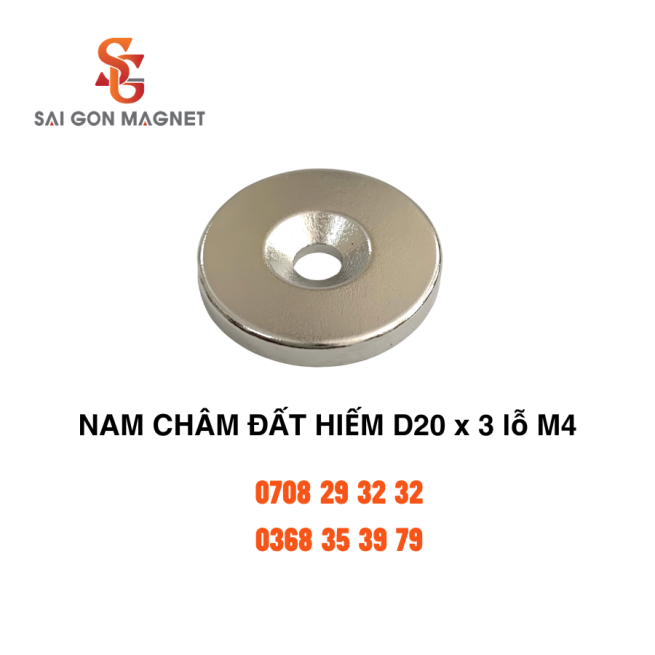Nam châm đất hiếm D20x3mm lỗ M4 gắn kết sản phẩm DIY cần lực hút nhưng yêu cầu mỏng nhẹ.