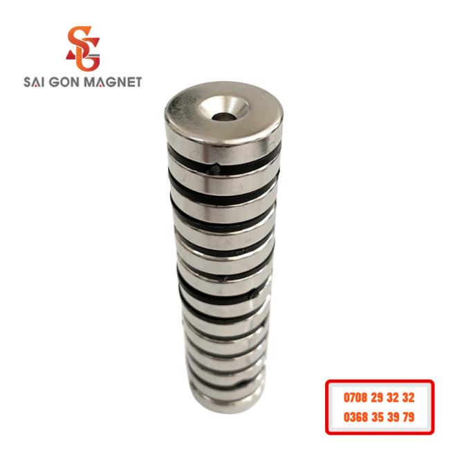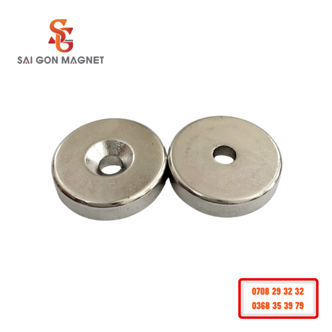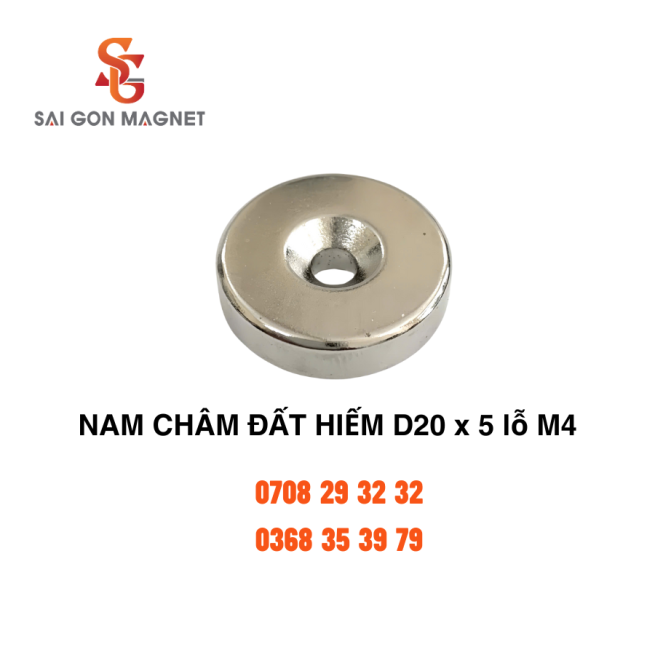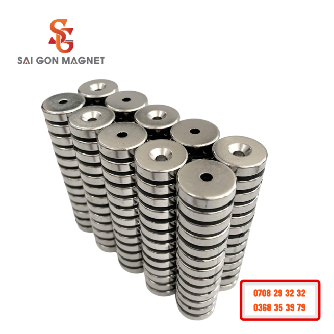 Nam châm đất hiếm D20x5mm lỗ M4 phù hợp lắp âm trong vật liệu gỗ, mica.