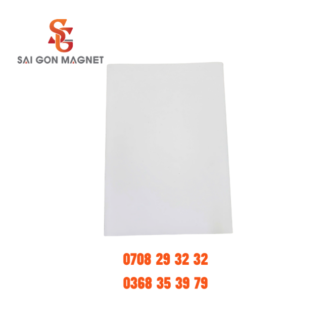 Nam châm dẻo tấm A4x0.5mm màu trắng được sản xuất từ bột ferrite từ tính kết hợp cao su tổng hợp, mang lại độ dẻo, linh hoạt và khả năng bám từ tốt. Bề mặt được phủ nhựa PVC trắng mịn, giúp in ấn trực tiếp, dán decal, hoặc viết bút lông dễ dàng.