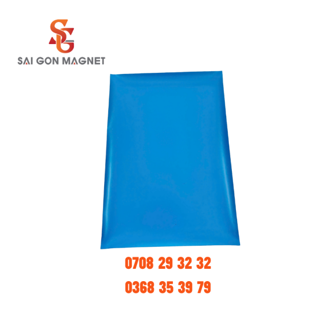 Nam châm dẻo tấm A4x0.5mm màu xanh dương là loại nam châm mềm có bề mặt phủ PVC xanh dương, sản xuất từ bột ferrite từ tính kết hợp cao su tổng hợp. Vật liệu này giúp tăng độ dẻo, dễ cắt, dễ tạo hình, đồng thời vẫn giữ được từ tính ổn định khi dán lên bề mặt kim loại như sắt, thép.